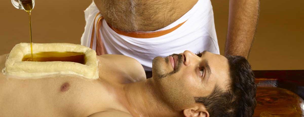 It is a process in which the medicated oil, medicated buttermilk, herbal decoction or herbal milk is poured on the forehead for a prescribed time duration of approx 45 minutes. It helps to cure mental and neurological weakness, reduced sleep, headache and many other neurological diseases. It can balance all three doshas depending on the medicine used.