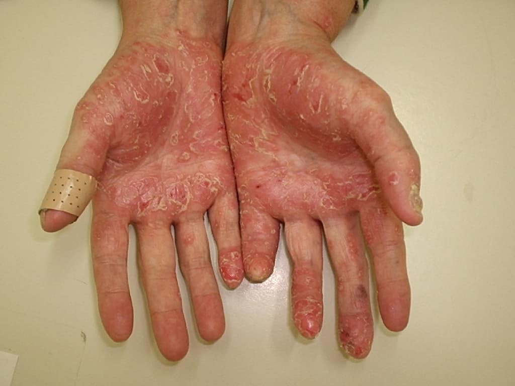 - Dry or itchy skin with crusts producing fluids.