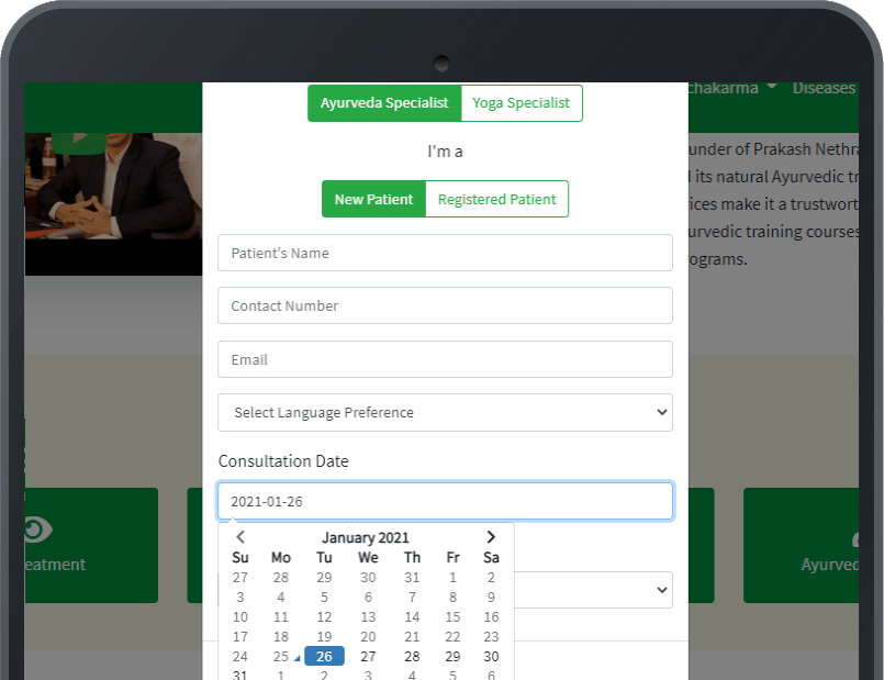 Consultancy with our doctors becomes easier with our online consultancy mode. Ayurveda is an ancient treatment method. In Ayurveda, it is believed that most diseases occur due to imbalances in Doshas. Doshas is a balance of five elements of the body. It is divided into Vata, Pitta and Kapha. Imbalances in this dosha can be found with online consultation.